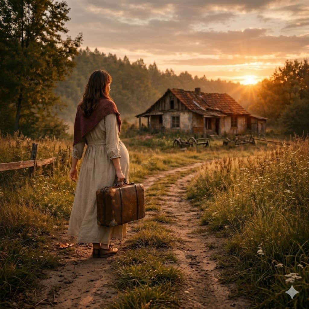 Había salido de una casa donde la querían invisible, con una maleta vieja y el cuerpo a punto de abrirse para traer una hija al mundo. Había caminado hasta quedarse sin fuerzas, tocado puertas que se cerraron y llegado al borde exacto donde una mujer deja de pedir y empieza solamente a resistir. Y justo allí, cuando el sol caía y ya no quedaba nada en lo que apoyarse, había aparecido un tejado rojo entre los árboles.