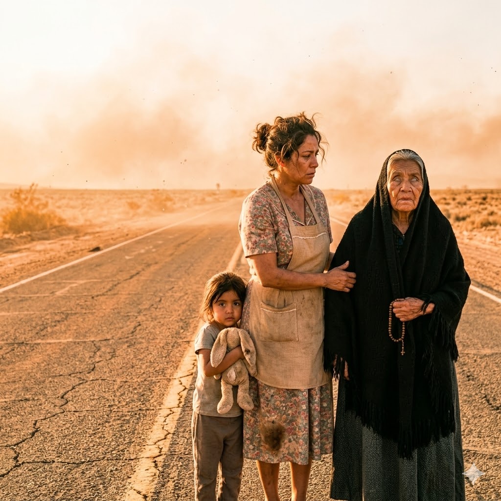 Lupita respiró hondo, miró la carretera vacía, el desierto infinito y luego a aquella mujer rota.