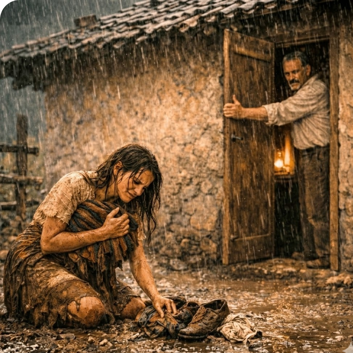 La muchacha tardó varios segundos en entender que aquello estaba pasando de verdad. Se arrastró por el lodo para recoger lo que pudo. Las manos le temblaban. El cuerpo no le daba. Apretó el rebozo mojado contra el pecho, volvió hasta la puerta y golpeó con los nudillos, primero suave, luego con desesperación.
