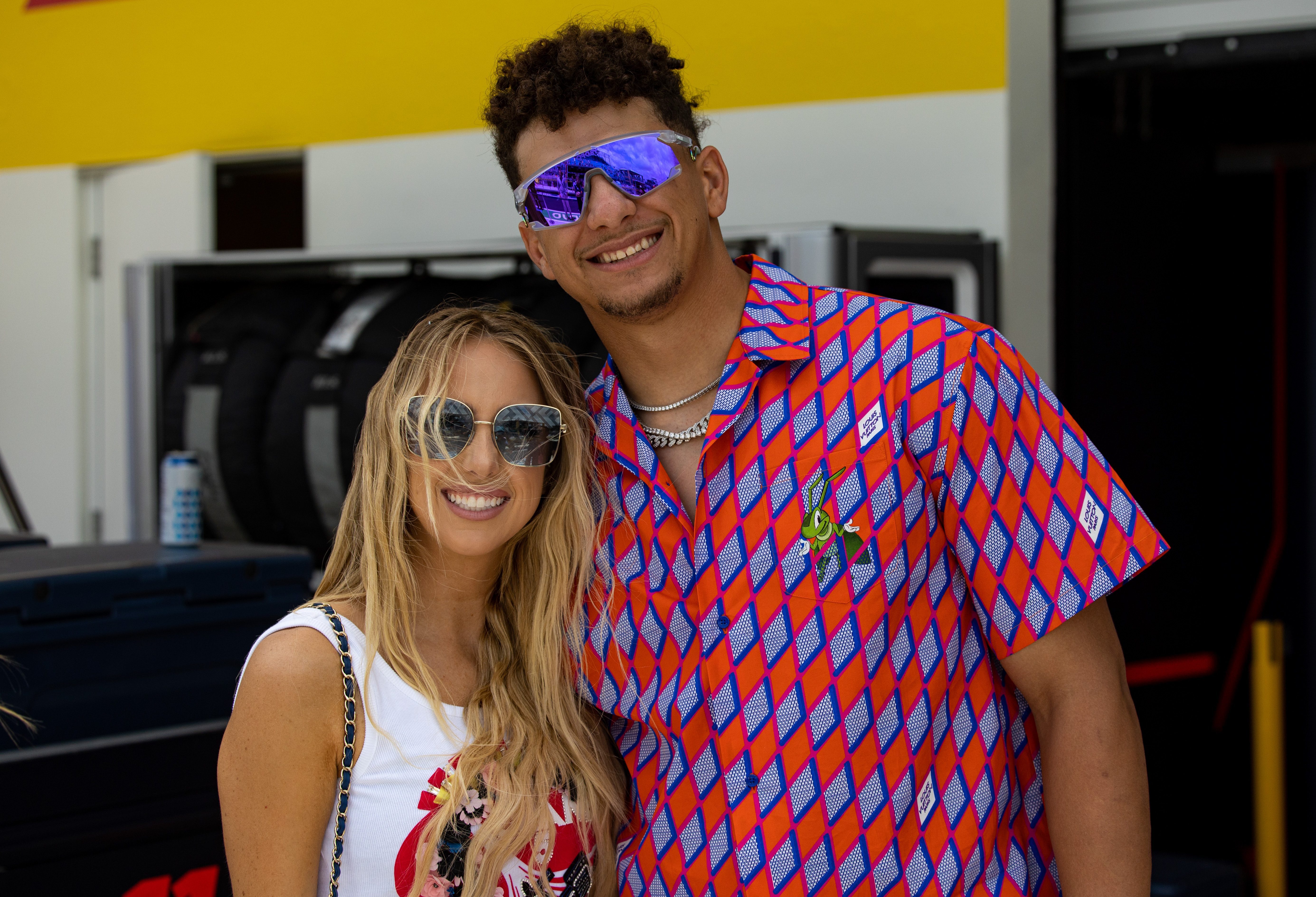 MIAMI, FL – MAY 07: Kansas City Chiefs quarterback Patrick Mahomes and his wife Brittany Mahomes in the Red Bull garage during the F1 Grand Prix of Miami at Miami International Autodrome on May 7, 2023 in Miami, Florida. (Photo by Kym Illman/Getty Images)
